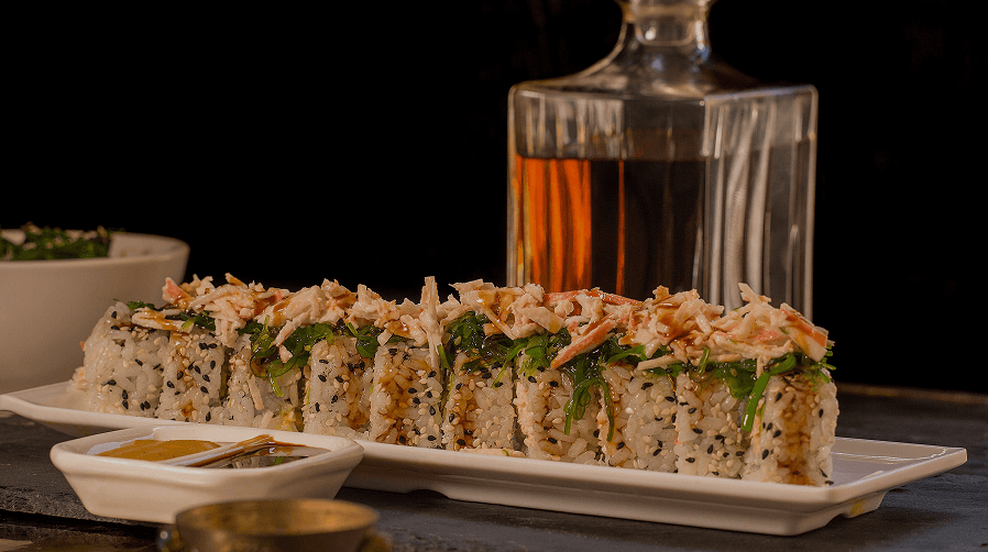 con piezas de sushi y sashimi ejecutadas con precisión y producto excepcional. Para comidas de