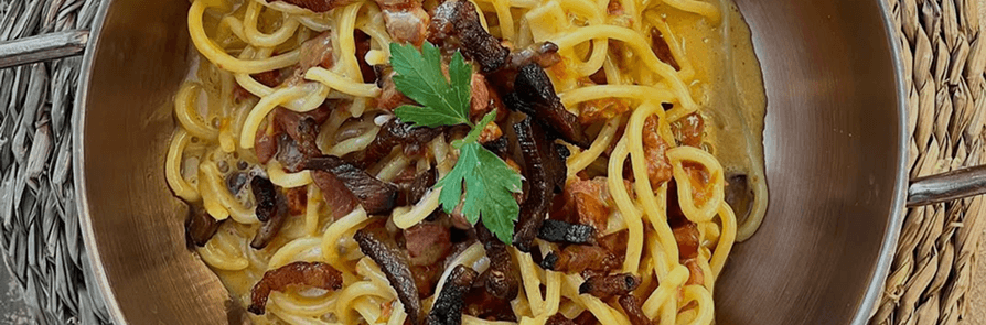 En pasta, los tagliatelle absorben mejor las salsas cremosas, los spaghetti funcionan de maravilla con el pesto o la boloñesa, y los penne son la opción más versátil. Los ravioli de carrillera son una opción fuera del formato build-your-own que merece la pena probar.